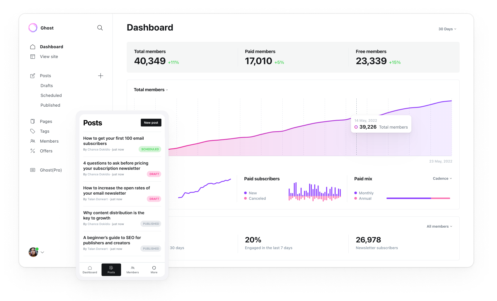 Use Ghost as a headless CMS, integrating the API with any third party front-end or custom static framework.