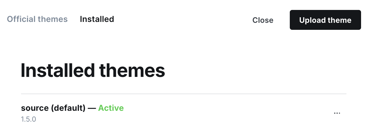 Navigate to the Themes view, then go to Installed and click the … option, next to the Active label, to download your current theme. This will be a.zip file. Optionally, if you have other themes that you’d like to save, download them and back them up.