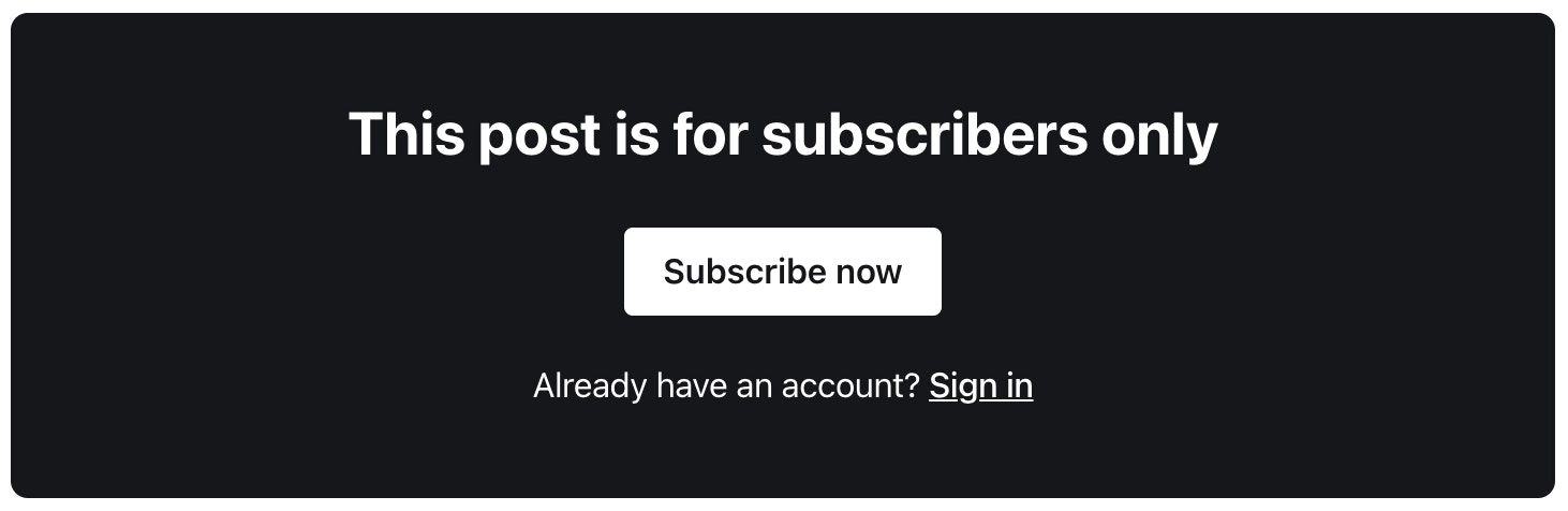 With the{{content}} helper, visitors who don’t have access to a post (determined by the access property) will see a default call to action in the content area instead, prompting users to upgrade their subscription. Used in conjunction with a free public preview in post content, the CTA will be displayed after the free preview.